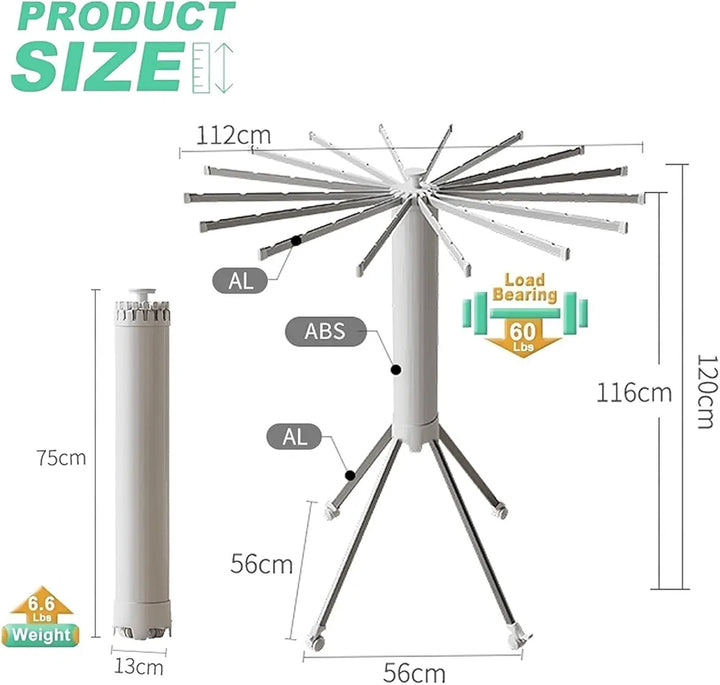 توي بوكس – مجفف ملابس قابل للطي ثلاثي القوائم – دوار محمول بارتفاع قابل للتعديل
