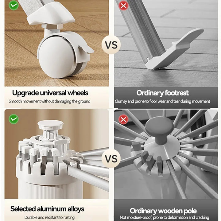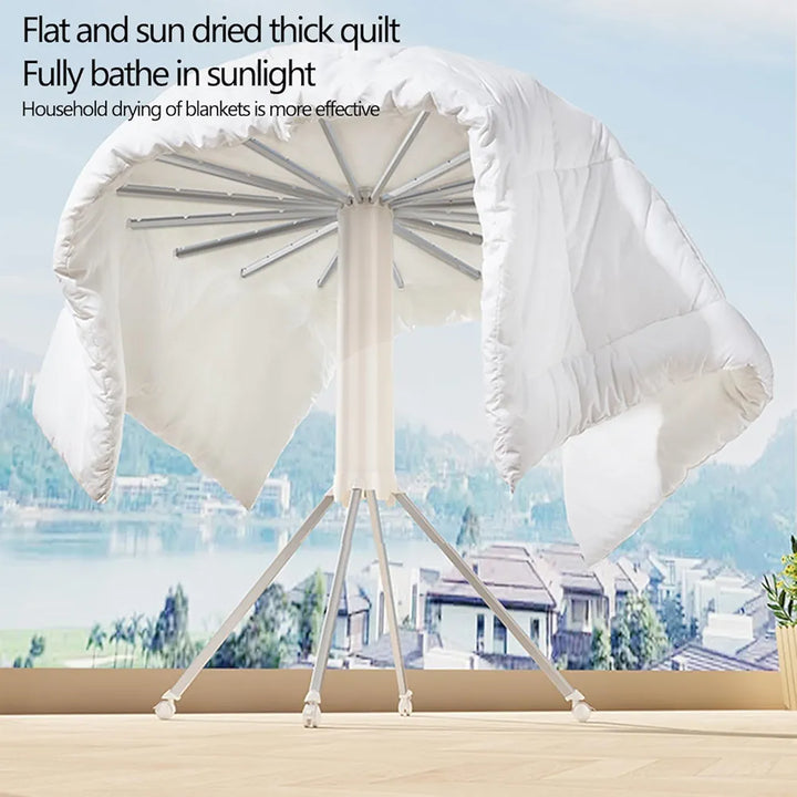 ✨ اجعل عملية تجفيف الملابس أكثر سهولة وراحة مع مجفف الملابس القابل للطي من توي بوكس. بفضل تصميمه الذكي على شكل مظلة ثلاثية القوائم، يوفر استقراراً مثالياً حتى في المساحات الضيقة. مصنوع من خليط الألومنيوم المقاوم للصدأ، متين وخفيف الوزن، ويمكن تخزينه بسهولة عند عدم الاستخدام. 💎