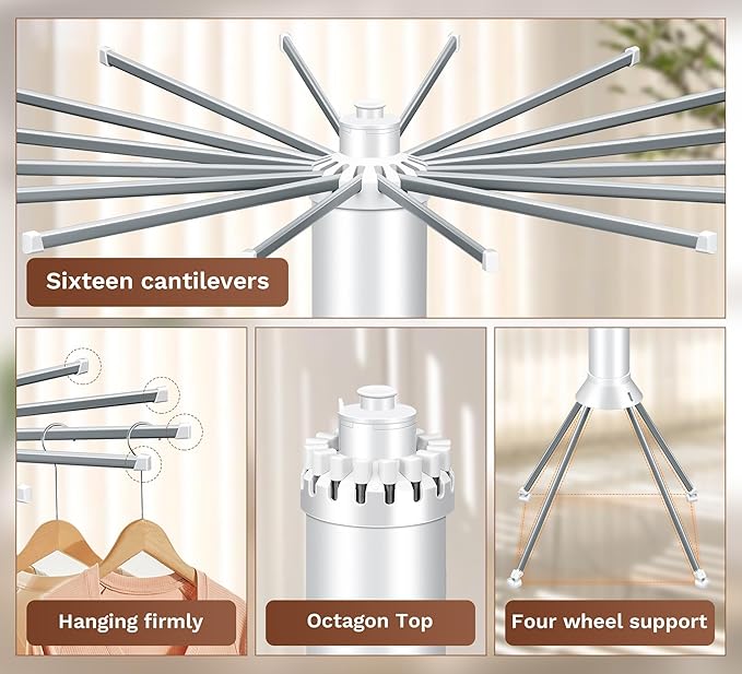 👉 يحتوي على ثلاثة أذرع لتحمل عدد كبير من الملابس